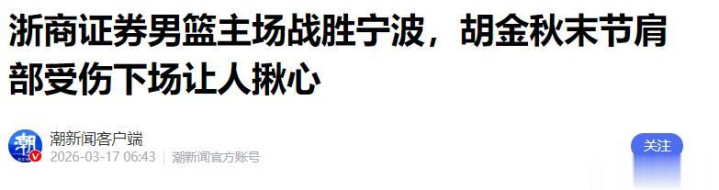 潮新闻——浙商证券男篮主场征服宁波,胡金秋小节肩部受伤下场让东说念主揪心