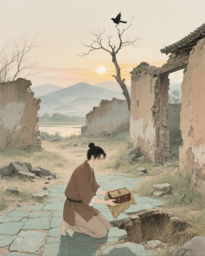 沈翊骑马赶往唐河县,找到了孟家老宅——那是一座早已崩塌的土坯房,院子里长满了荒草。他在废地中翻找了整整一天,终于在地基的一块青石板底下,挖出了一个油布包裹的小匣子。