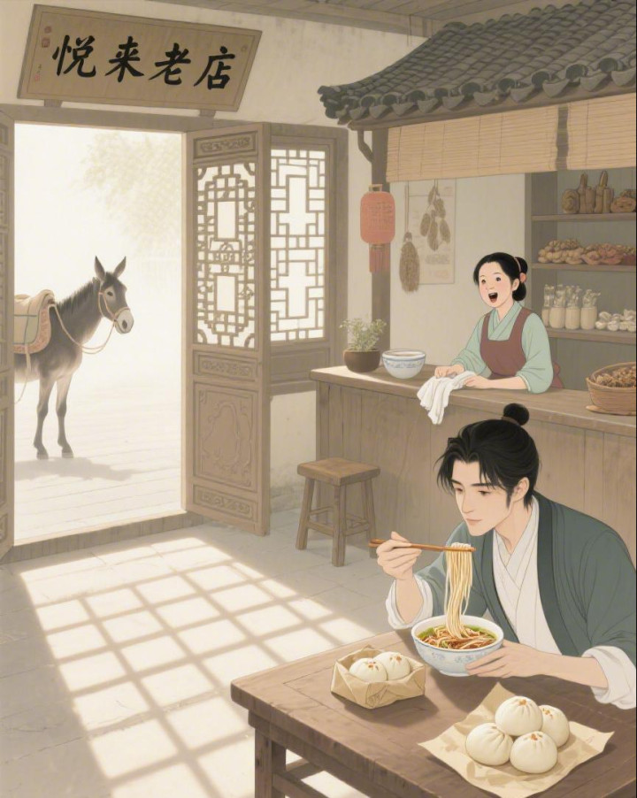 三年前,孟婉娘随父亲到卫辉府投亲,途经汲县时在悦来老店歇脚。孟怀安路上感染了风寒,体魄软弱,便在店中多住了几日。