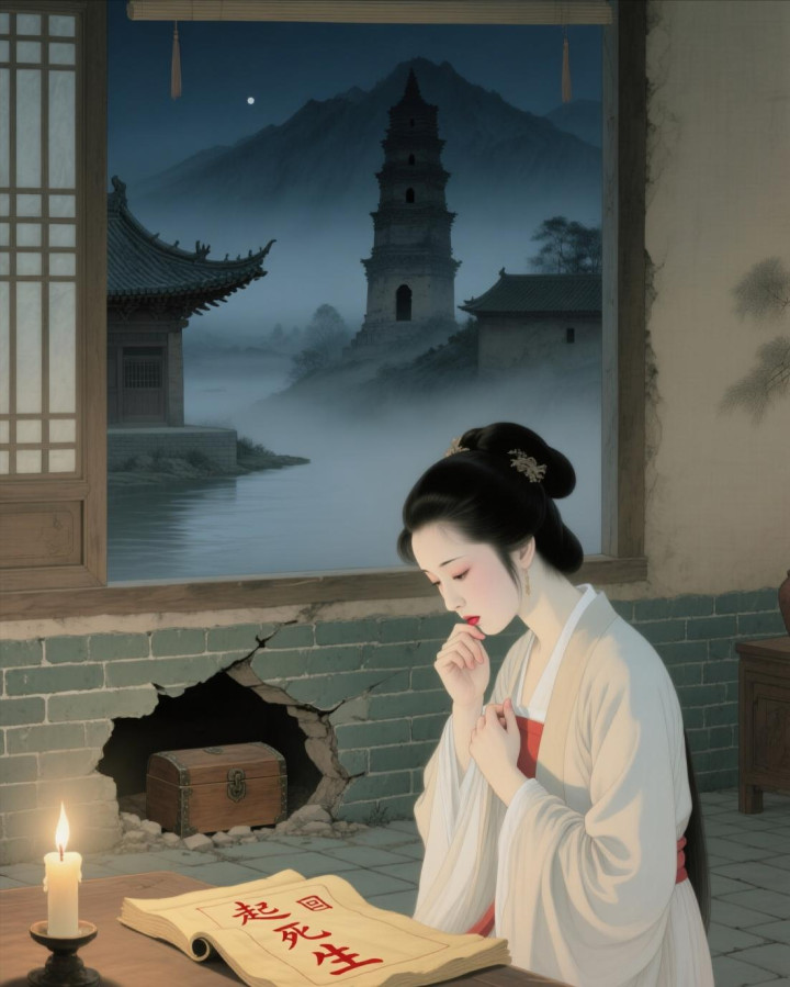 这年冬天,沈翊接到了一桩新案子——城西的王员外家闹鬼,每到深夜就有白衣女子在花圃里抽流泪噎,吓得一家老少不敢睡眠。沈翊带着铜镜去了王员外家,在花圃里守了整夜。