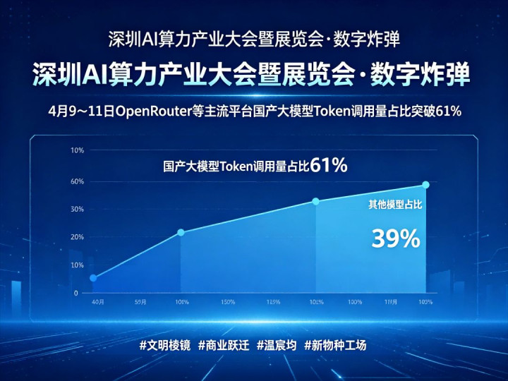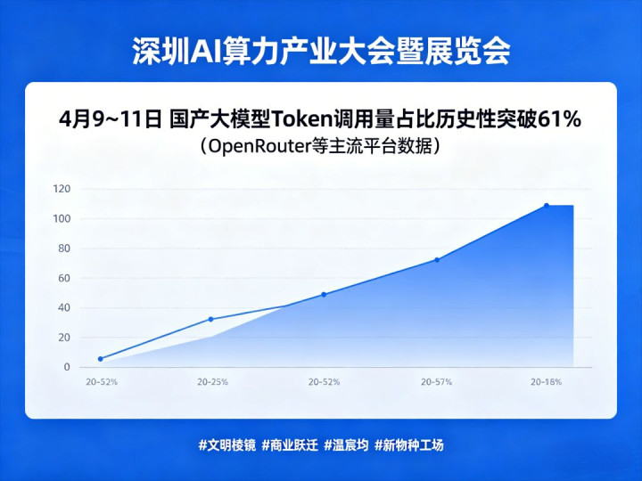 4月9~11日正在举行的深圳AI算力产业大会暨博览会扔出一颗“数字炸弹”:在OpenRouter等主流平台上,国产大模子的Token调用量占比,历史性温情61%。