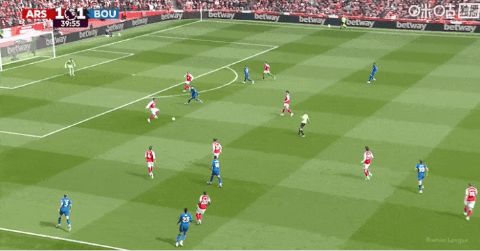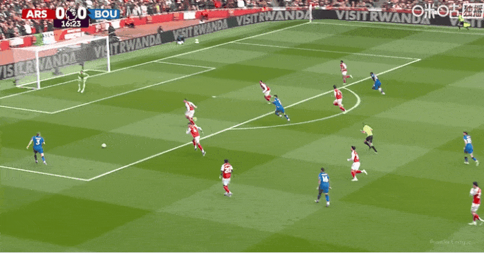 第74分钟,埃瓦尼尔森禁区前一垫,斯科特突入禁区破门,阿森纳1-2逾期伯恩茅斯。