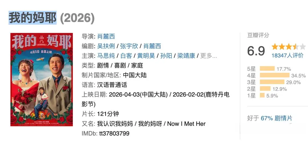 《我的妈耶》和《我许可》相通,都是主打女性亲情电影,但很彰着后者口碑更好一些,也更受宽待,而前者的口碑就说来话长了,评分不到7分,还有点效法《你好李焕英》的嗅觉。望望电影申诉的什么故事吧。
