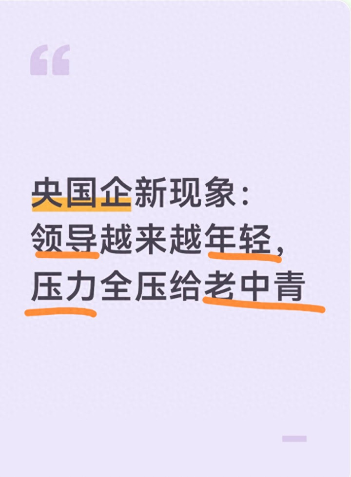 最近和身边在国企、央企作事的一又友聊天,各人齐提到了一个很遍及的景观:当今单元里的看守层,举座越来越年青化,80后、90后走上看守岗亭还口角时时见。从国度战术角度来说,鼓舞干部队伍年青化、专科化,是为了提高后果、增强活力,本意是好的,也合适新时间国企改进的目的。