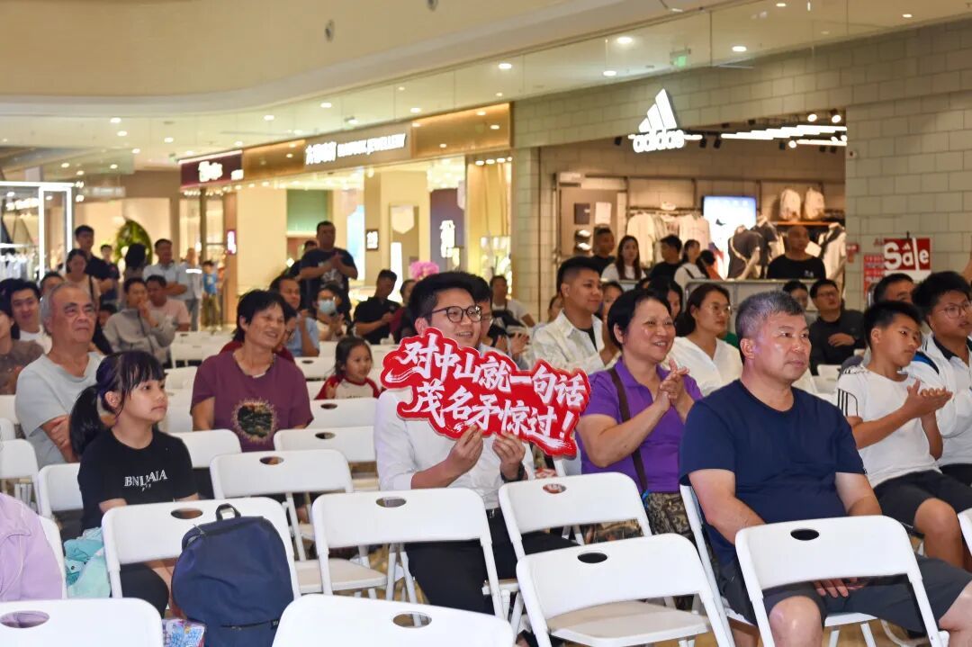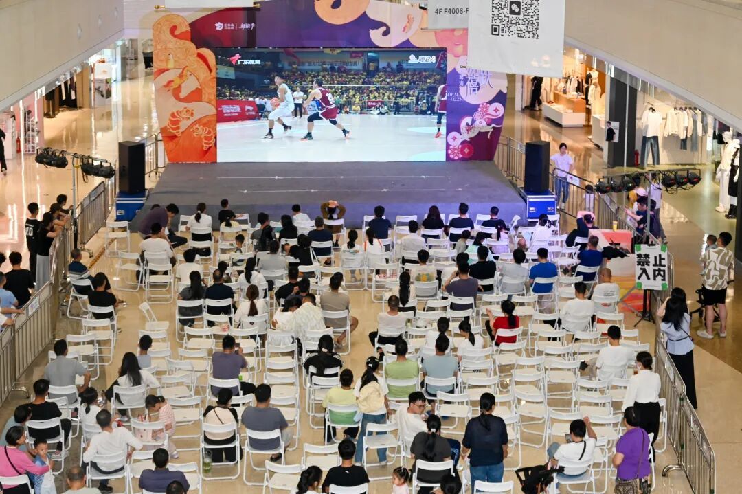 与此同期,线下不雅赛点东谈主气爆棚,氛围感拉满。记者拜谒了位于爱琴海购物公园的茂名专属大屏不雅赛点,晚上7时许,不雅赛区便已座无隙地,早早赶来的球迷们有序落座,现场东谈主头攒动、打扰稀奇。人人或身着茂名队应援服,或手握应援棒,或在脸上贴着捧场贴纸,满眼都是期待与热忱。跟着现场氛围渐浓,整皆响亮的标语此伏彼起,“倜傥风流,篮下立名”“茂名加油,前仆后继”的大喊声飞动在市集上空,金声玉振,委宛东谈主心。