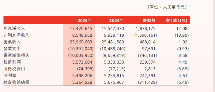 日前,渤海银行(09668.HK)发布2025年齿迹报告。放胆年末,该行总金钱破坏1.93万亿元,全年商业收入259.70亿元,同比增长1.92%,在相连多年下滑后重回正增长;净利润54.98亿元,增幅4.61%。