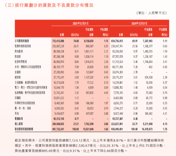 更需警惕的是,不良的结构性分化正在加重。个东说念主贷款不良率高达3.80%,显赫高于公司贷款。而公司贷款不良率也从2024年末的1.11%微升至1.15%,并未跟着宏不雅经济企稳而回落。这意味着在对公端,更生不良的压力仍未隐藏;在零卖端,个贷风险正以相对更快的速率侵蚀金钱质料,消费金融、信用卡、野心肠贷款等零卖产物的风险订价与风控模子,或需再行校准。