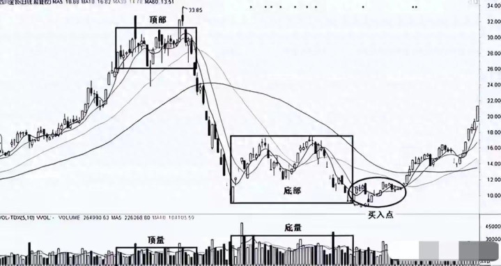 最佳是股价从高点回撤跳跃40%,而且在低位横盘整理至少2个月以上。如若大盘处于舛误反弹环境,可将横盘时辰放宽至3个月。底量的对比对象,是上一轮飞腾波段中出现的阶段性天量(顶量),而非历史最高位的那一根孤量。
