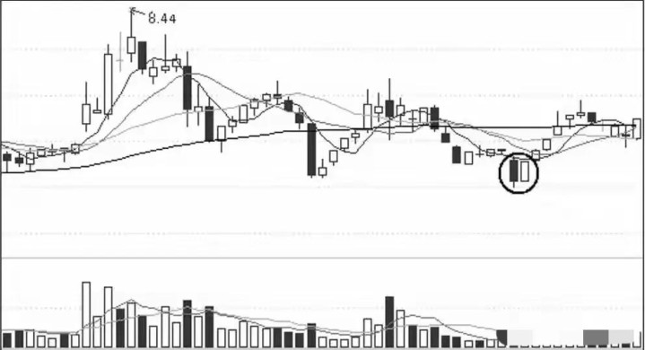 (8)股价翻新低但成交量却显著小于前一次底量,属于无量阴跌通谈