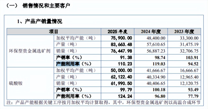 据短平快解读了解,2023年至2025年(申报期),森合高科环保型贵金属索求剂产能欺诈率差别为94.52%、119.03%、110.23%,期末加权平均产能7.59万吨,本次扩产罕见于该产能的52.7%,扩产程序并不低。另外,产销率下滑阐发,差别为103.91%、98.74%、91.38%。