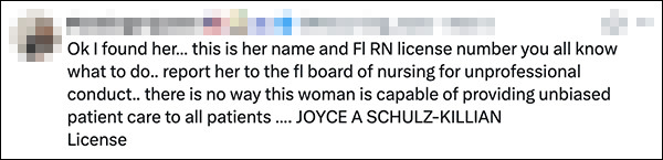 舒尔茨-基利安给好意思媒的复兴明晰地抒发了她拍摄这段看似猖獗的视频的初志,却引来不少特朗普维持者的历害。他们在视频下方留言威迫要根除舒尔茨-基利安从业经考据,致使有东谈主企图东谈主肉出她的位置……