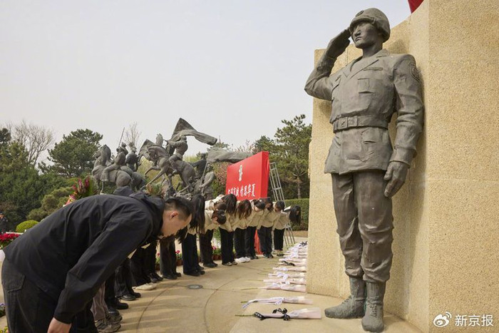 举座东谈主员向创新先烈三鞠躬,用最庄重的礼节抒发回首、交付哀想。