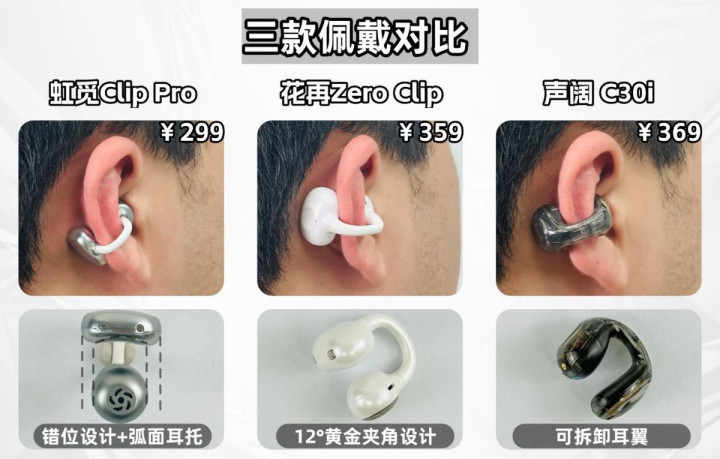 当作测评博主,耳夹式耳机市集热度缓缓飞腾,生手小白思不踩雷真实挺难。挑耳机就看这三点:音质、佩带、性价比。为了帮大家省下试错的钱和时辰,我专诚从海量家具中筛选出了几款在音质、舒领域以及性价比上齐经得起覆按的耳夹式,但愿能帮你快速锁定本命耳机。按圭表筛下来,辞别是虹觅Clip Pro、花再Zero Clip、声阔 C30i。