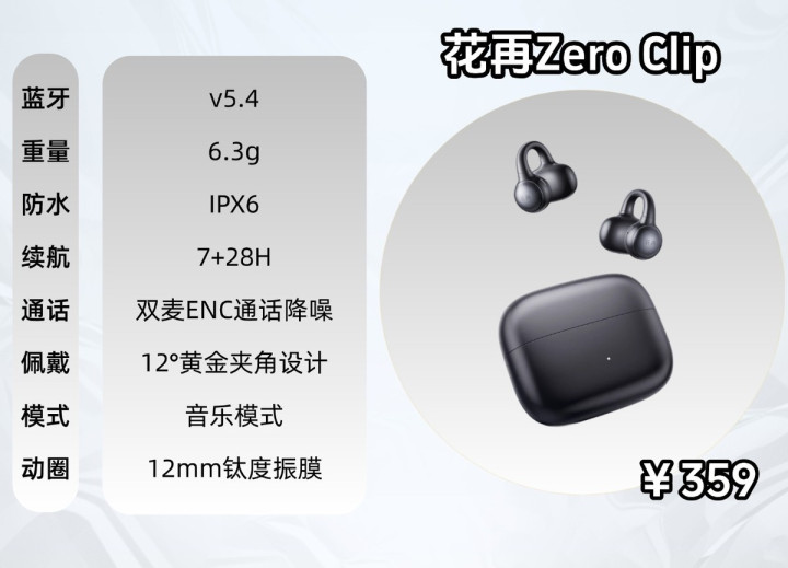 花再Zero Clip:撑合手IPX6防水,续航证实可以,12°黄金夹角商量,佩带较踏实。然则单耳偏重,在漏音步调证实一般。