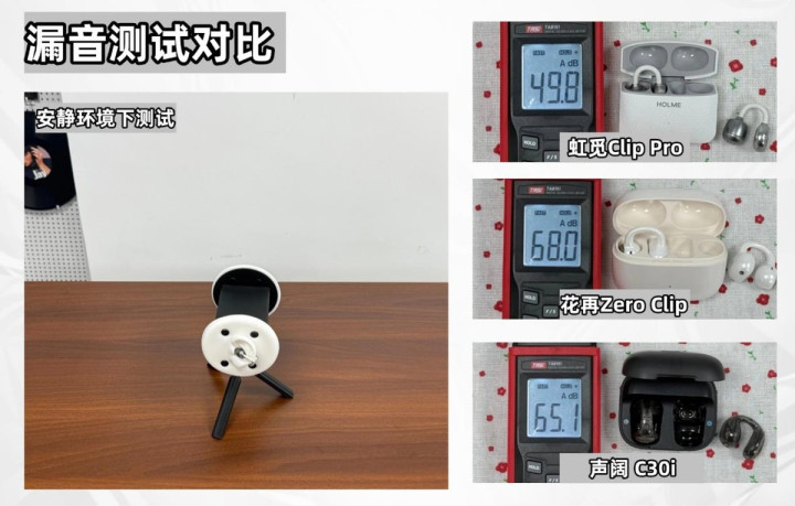 声阔 C30i:耳夹在漏音步调上证实一般。实测最大音量漏音为65.1dB,在正常音量下,不成保护个东说念主隐痛,漏音方面有待擢升。