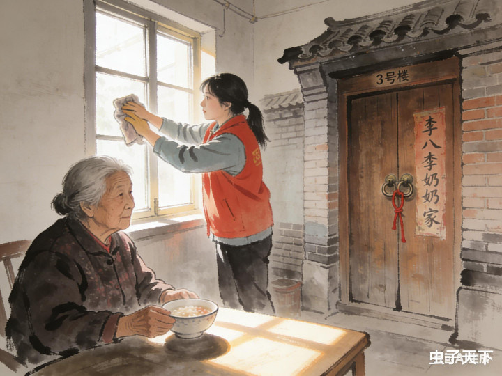 那全国午,志愿者们没走,帮李奶奶擦了窗户、扫了房子,还陪她泡了一坛子腊八蒜。