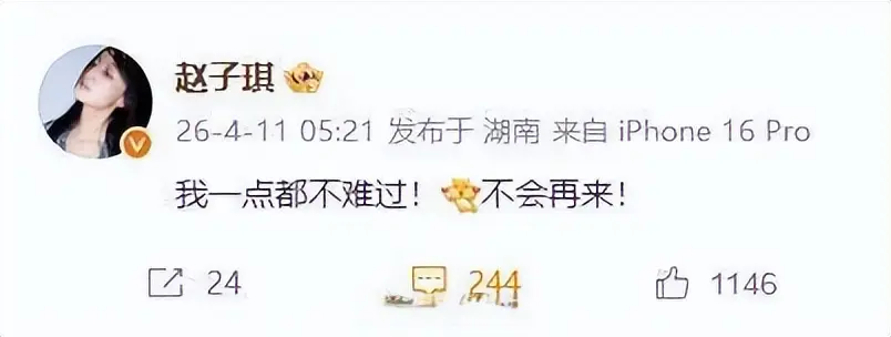 此前,4月10日晚,《乘风2026》初次公演直播开启。赵子琪处所孙怡团饰演总票数845分,高于敌手阚清子团的822分。但因队长1v1对决圭臬中,孙怡以423票输给阚清子468票,触发“败队里面淘汰”轨则。最终孙怡团三东谈主参加三选一投票圭臬,赵子琪以304票垫底出局。
