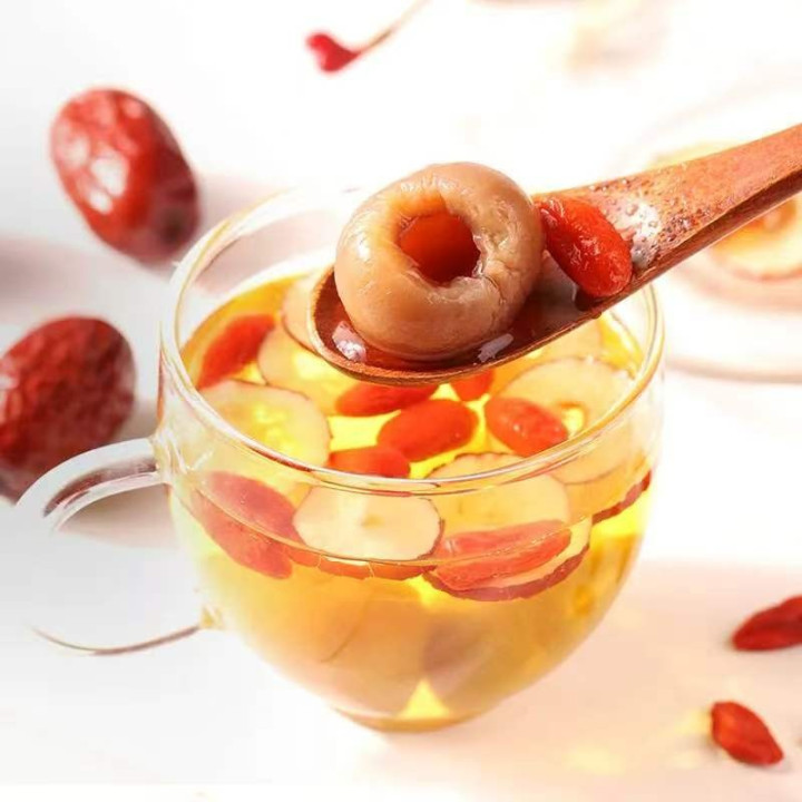 作念法简版:茯苓约8克、桂圆肉6颗、红枣3颗(去核),开水400毫升。开水冲泡,盖盖焖15–20分钟,连同桂圆和红枣沿途吃。提议睡前1小时喝,每天1杯,不要贪多。