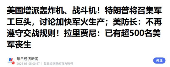 五角大楼走廊的电子屏上,数字每秒皆在快速跨越,每一秒就有2500好意思金花费在干戈中。这曾经不是单纯的军费支拨,而是好意思国财政的雄壮损耗。2026年3月4日,好意思国的债务曾经接近40万亿好意思元,一份追加500亿好意思金军费的病笃拨款恳求,正被提交到国会,没东谈主状态轻易接办。