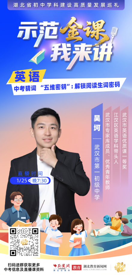 荆楚网(湖北日报网)讯(记者都一璇、何鹏)在九年齿英语中考温习的伏击阶段,阅读剖析中的生词频频成为学生的“拦路虎”。何如快速、准确地臆想词义,提高阅读答题成果和准确率?1月25日晚,在“示范金课我来讲——湖北省初中学科教育高质地发展巡礼”行径中,武汉市第一低级中学吴坷诚笃的一堂九年齿英语温习直播课,系统展示了破解生词艰苦的“五维密钥”。
