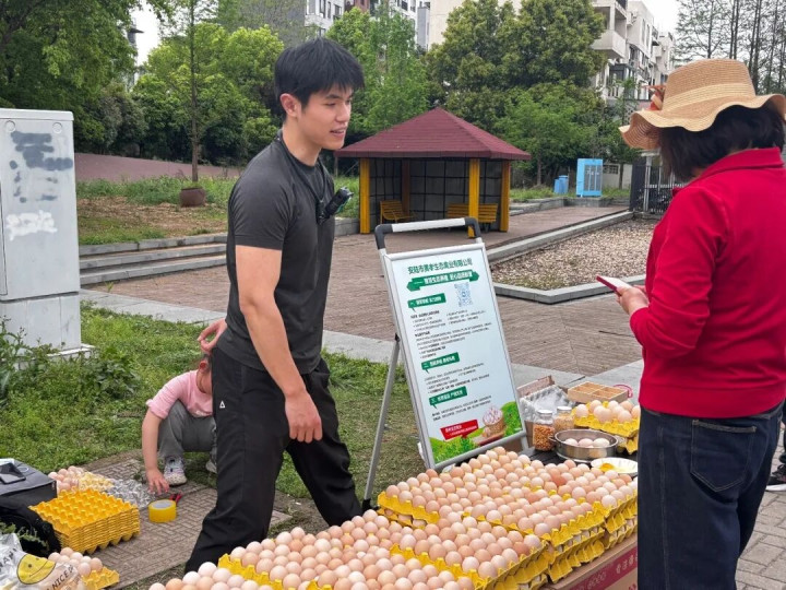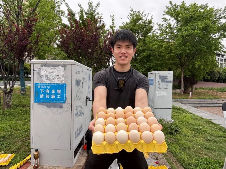 近日,在武汉东西湖区多个小区门口,常有一位26岁小伙摆摊卖鸡蛋。他年青、阳光的面目诱骗了不少叔叔大姨的眼神,小摊买卖十分火爆。